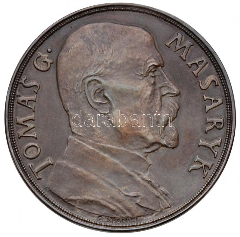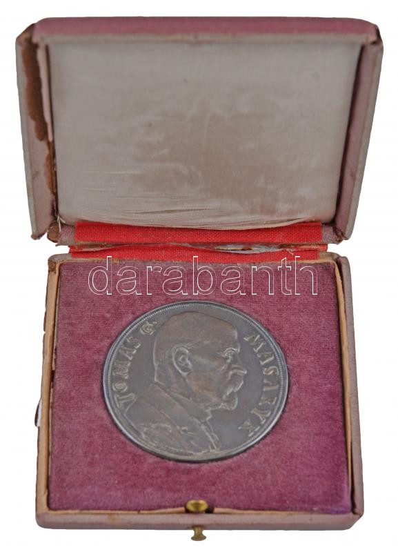 Czechoslovakia 1935. "85th Anniversary - Birth of Tomas G. Masaryk" Ag commemorative medallion in original damaged case, hallamrk on the edge. Sign.:O. Spaniel (53,05g/0.987/50mm) C:XF