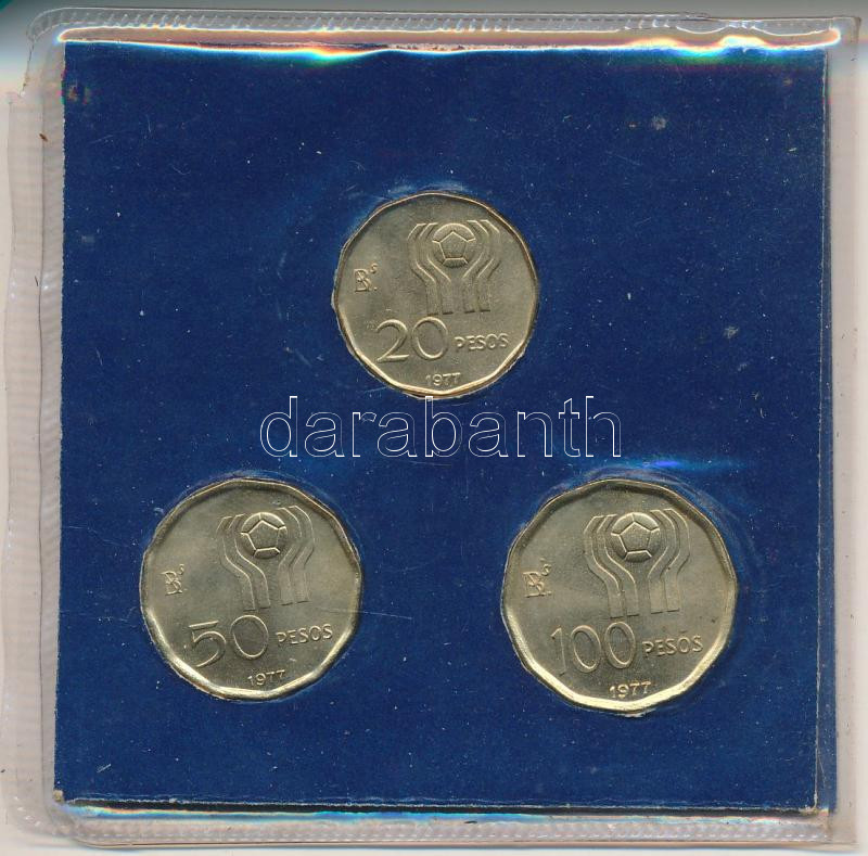 Argentína 1977. 20P, 50P, 100P "Labdarúgó VB 78" alkalmából kiadott díszszettben, T:1 / Argentina 1977. Football World Cup set of 20P, 50P, 100P. C: BU