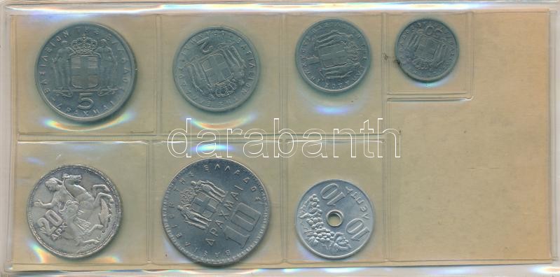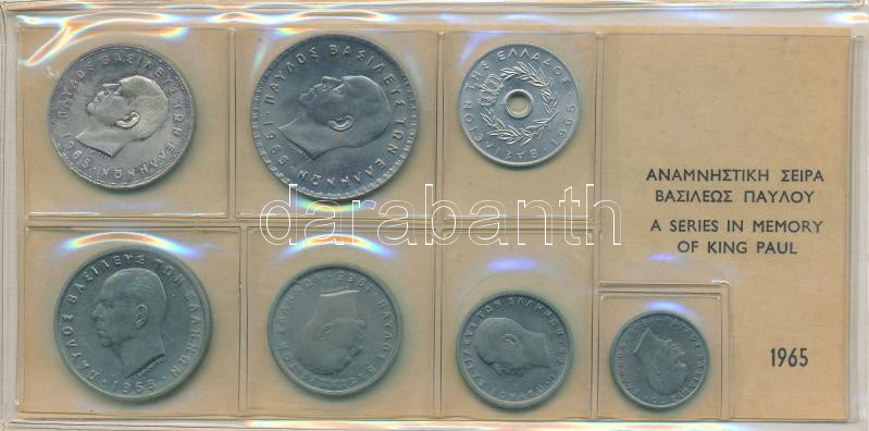 Greece 1965. 10 Lepta - 20 Drachmai "A Series in Memory of King Paul" 7xdiff pcs in foiled coin set C:UNC