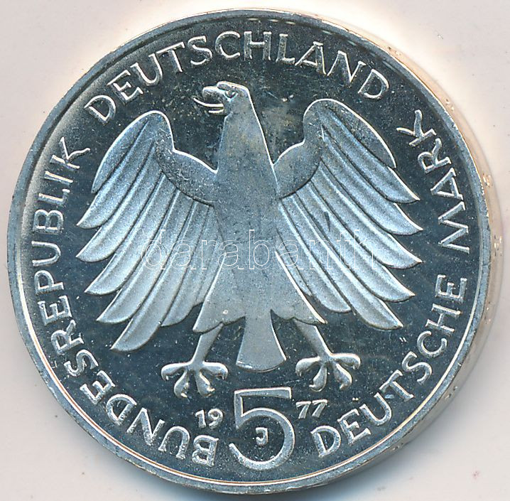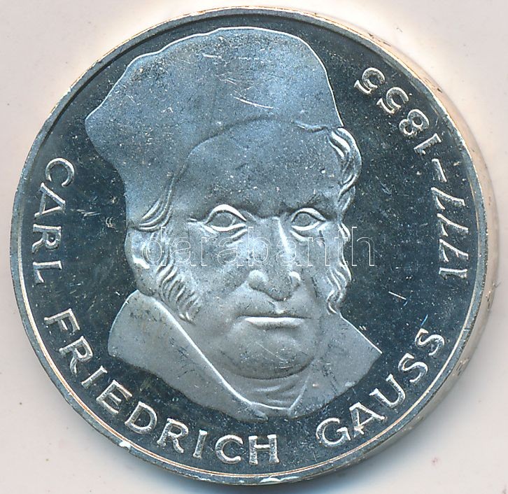 GFR 1977J 5 Mark "Bir... https://www.darabanth.com/hu/234-Gyorsarveres/234.0/Numizmatika/Kulfoldi-fem-es-ezustpenzek~30012/NSZK-1977J-5M-Ag-Carl-Friedrich-Gauss-T2-PP-3Cbr3EGFR-1977J-5-Mark-Birth-of-Carl-Friedrich-Gaus~II1036678