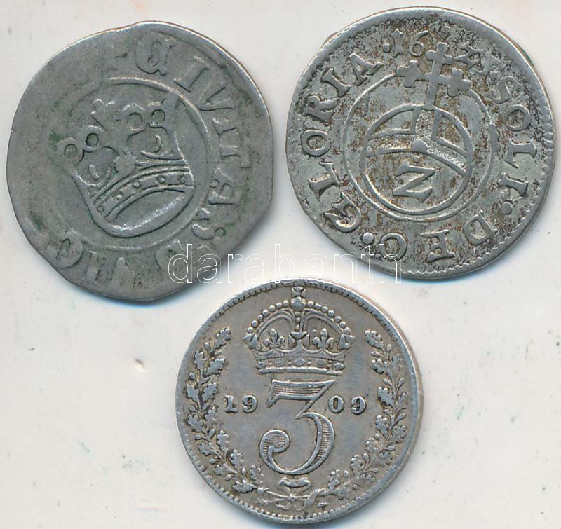 Német Államok / Szilézia / Schweidnitz 15??. 1/2Gr Ag "II. (Jagelló) Lajos" + Német Államok / Bajoroszág 1623. 2kr Ag + Nagy-Britannia 1909. 3p Ag "VII. Edward" T:2-,3