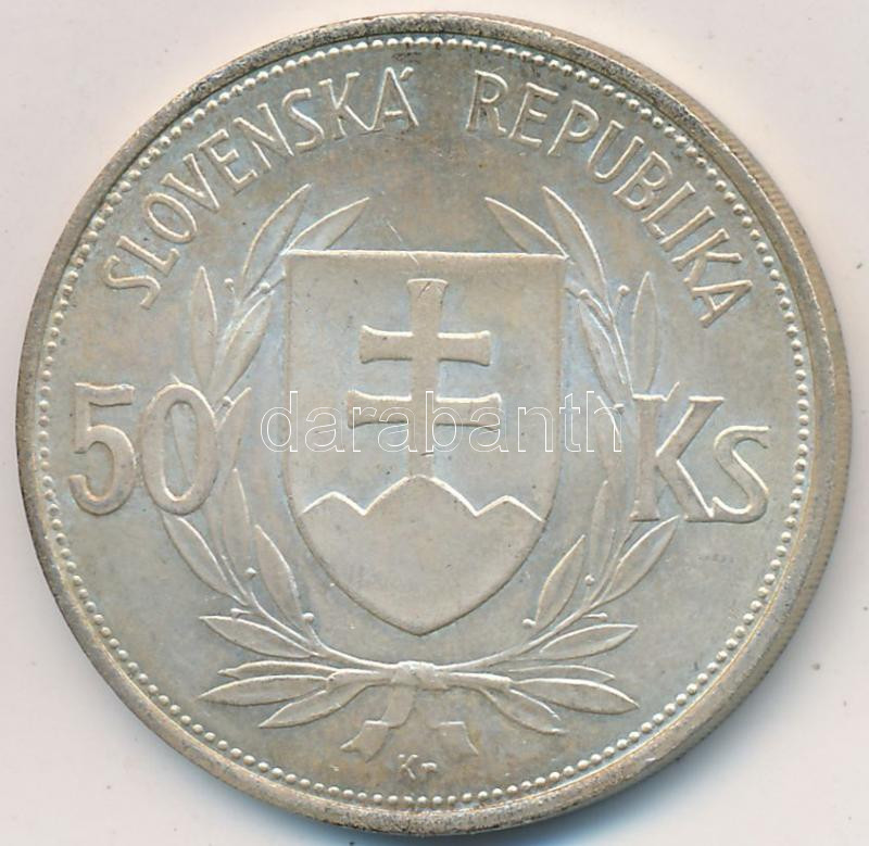 Leírás: Szlovákia 1944. 50K Ag "Függetlenség 5. évfordulója" T:2- kis patina