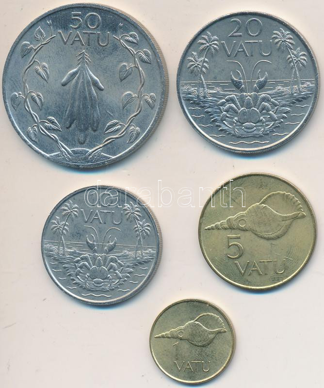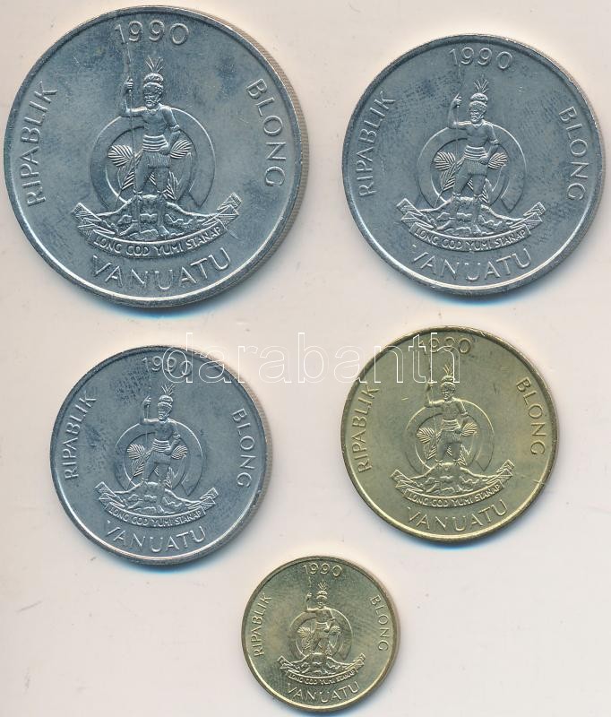 Leírás: Vanuatu 1990. 1V Ni-sárgaréz + 5V Ni-sárgaréz + 10V Cu-Ni + 20V Cu-Ni + 50V Cu-Ni T:2,2-
