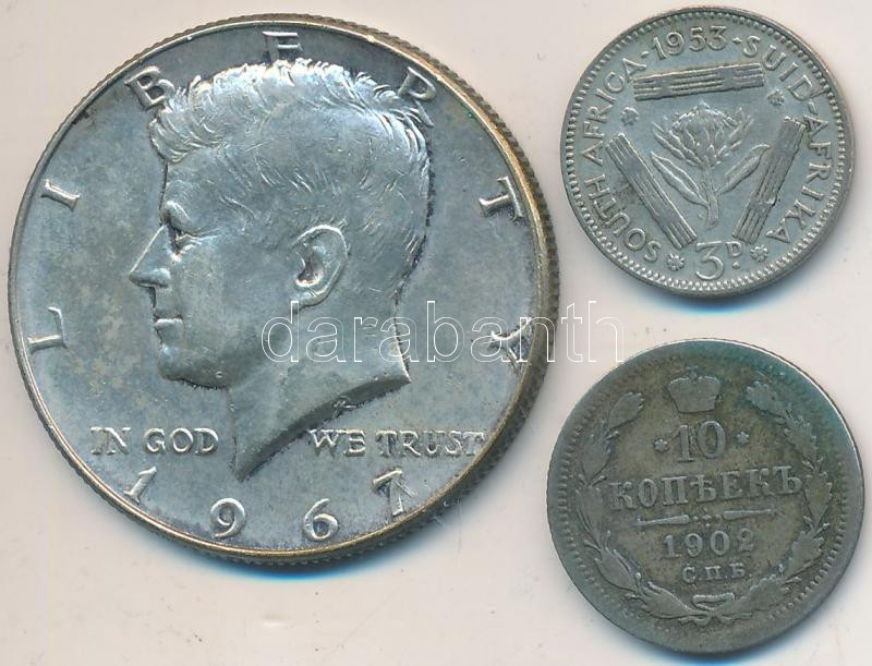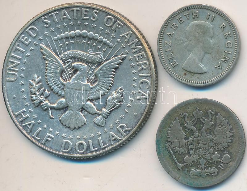 Vegyes: Amerikai Egyesült Államok 1967. 1/2$ Ag "Kennedy" + Dél-Afrika 1953. 3p Ag "II. Erzsébet" + Orosz Birodalom 1902. 10k Ag T:2,2-,3