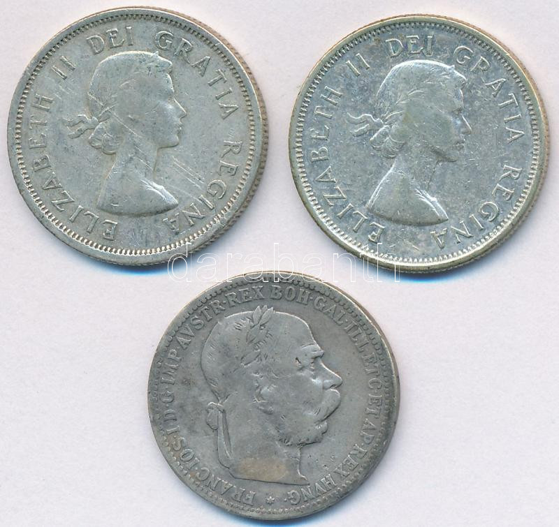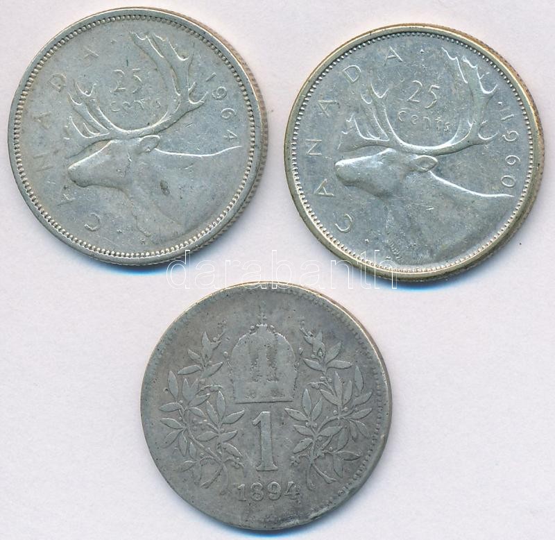 Vegyes: Ausztria 1894. 1K Ag "Ferenc József" + Kanada 1960-1964. 25c Ag (2x) "II. Erzsébet" T:2-,3