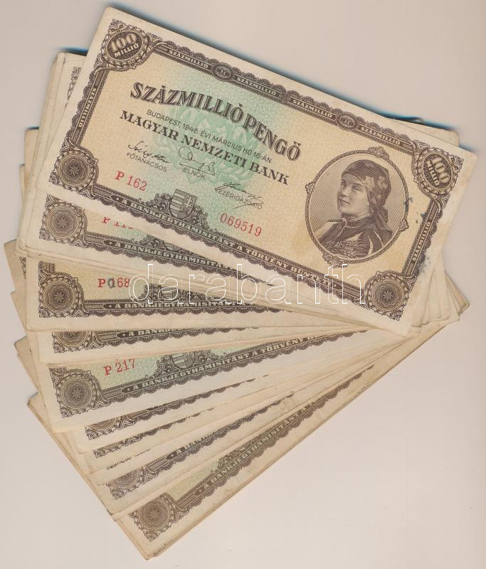1946. 100.000.000P (40x) T:vegyes https://www.darabanth.com/hu/234-Gyorsarveres/234.0/Numizmatika/Magyar-bankjegyek~30007/1946-100000000P-40x-Tvegyes~II1033730