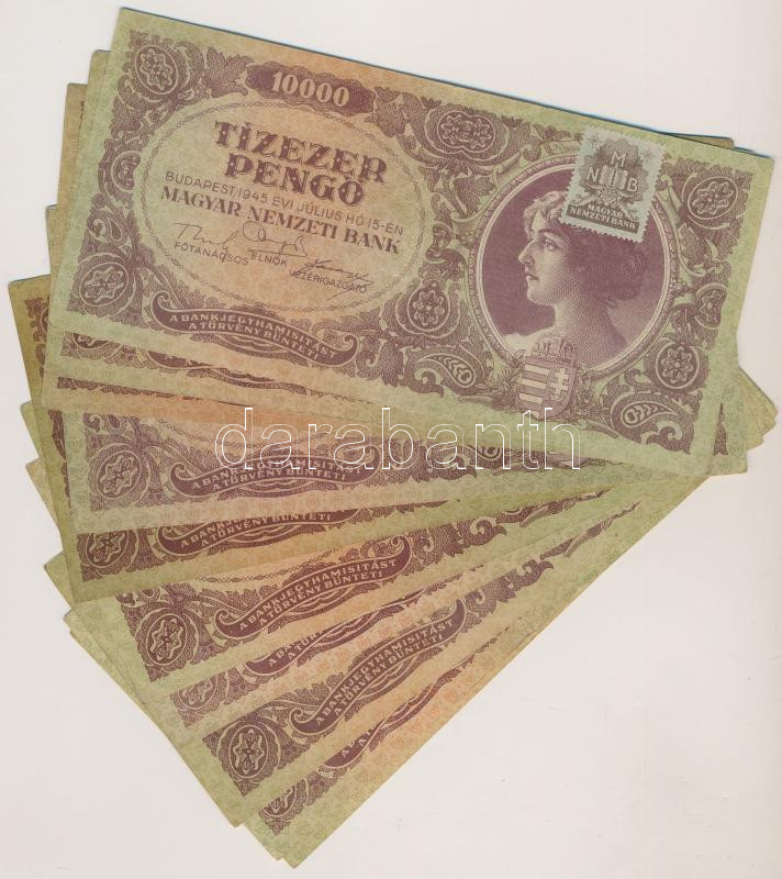 Leírás: 1946. 10.000P (15x) "MNB" bélyeggel T:II-,III