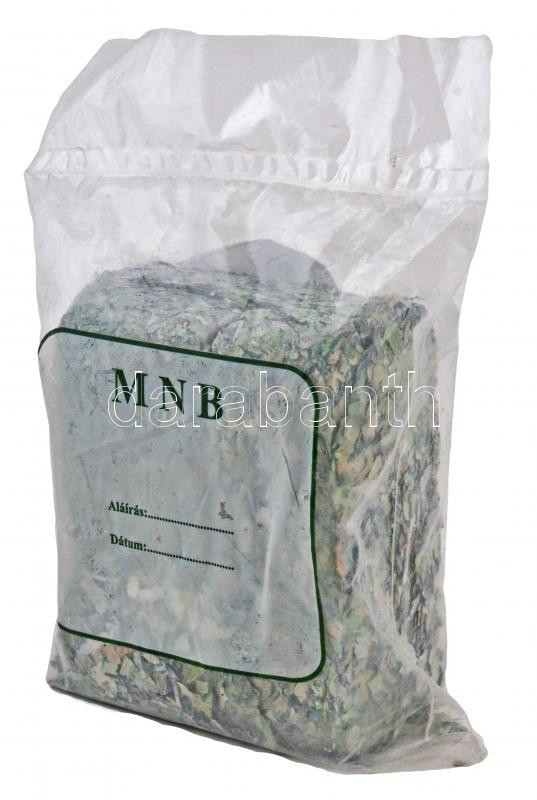 Leírás: MNB bankjegytégla érvénytelenített, bezúzott bankjegyekből