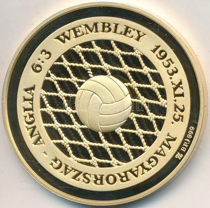 Leírás: 2003. "Magyarország-Anglia 6:3" aranyozott Ag emlékérem (31,104g/0.999/42,5mm) T:PP felületi karc