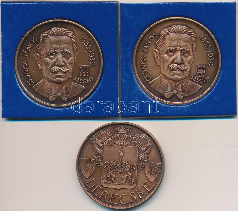 Fritz Mihály (1947-) 1989. "MÉE Szeged - Budai Baráti Kör / Csonka János" Br emlékérem eredeti csomagolásban (42,5mm) + Asszonyi Tamás (1942-) 1991. "Derecske" Br emlékérem (42,5mm) T:1,1-