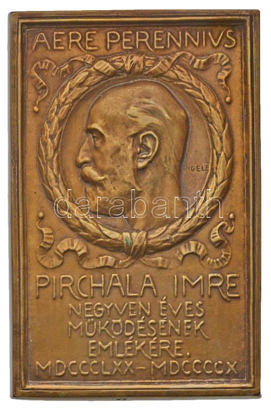 Rigele Alajos (1879-1940) 1910. "Pirchala Imre negyven éves működéséne... https://www.darabanth.com/hu/234-Gyorsarveres/234.0/Numizmatika/Magyar-emlekveretek~30009/Rigele-Alajos-1879-1940-1910-Pirchala-Imre-negyven-eves-mukodesenek-emlekere-Cu-plakett-~II1065878