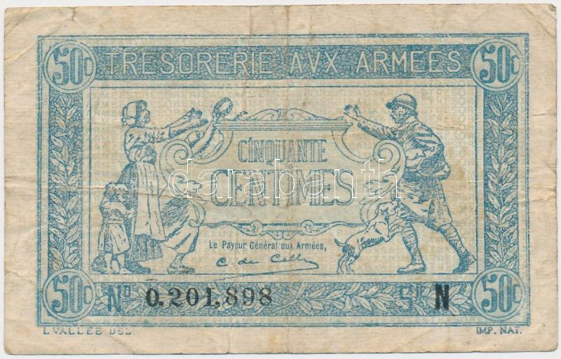 France ~191... https://www.darabanth.com/hu/234-Gyorsarveres/234.0/Numizmatika/Magyar-es-kulfoldi-papir-es-fem-szuksegpenzek~30006/Franciaorszag-7E1917-50c-Katonai-kincstarjegy-N-TIII-3Cbr3EFrance-7E1917-50-Centimes-Tresore~II1065298