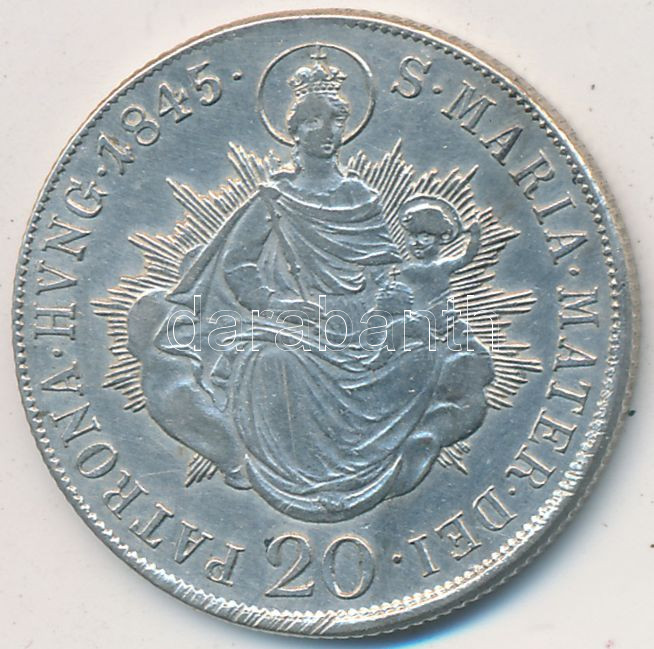 Huszár: 2018, Unger III.:1419. https://www.darabanth.com/hu/234-Gyorsarveres/234.0/Numizmatika/Magyar-fem-es-ezustpenzek~30008/1845B-20kr-Ag-V-Ferdinand-T2-2--3Cbr3EHuszar-2018-Unger-III1419-3Cbr3E~II1070670