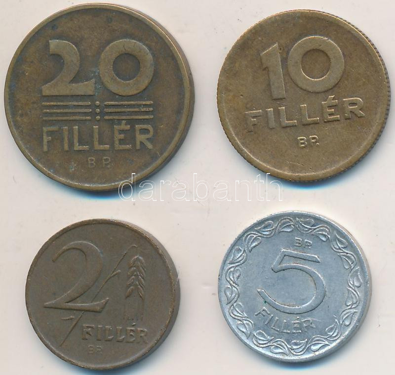 Leírás: 1946. 2f tombak + 1947. 20f Cu-Al + 1948. 5f Al + 1950. 10f tombak T:2,2-