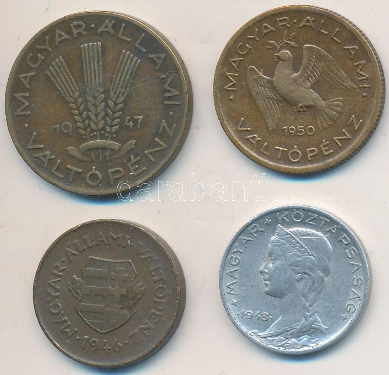 1946. 2f tombak + 1947. 20f Cu-Al + 1948. 5f Al + 1950. 10f tombak T:2... https://www.darabanth.com/hu/234-Gyorsarveres/234.0/Numizmatika/Magyar-fem-es-ezustpenzek~30008/1946-2f-tombak-plus-1947-20f-Cu-Al-plus-1948-5f-Al-plus-1950-10f-tombak-T2-2-~II1066575