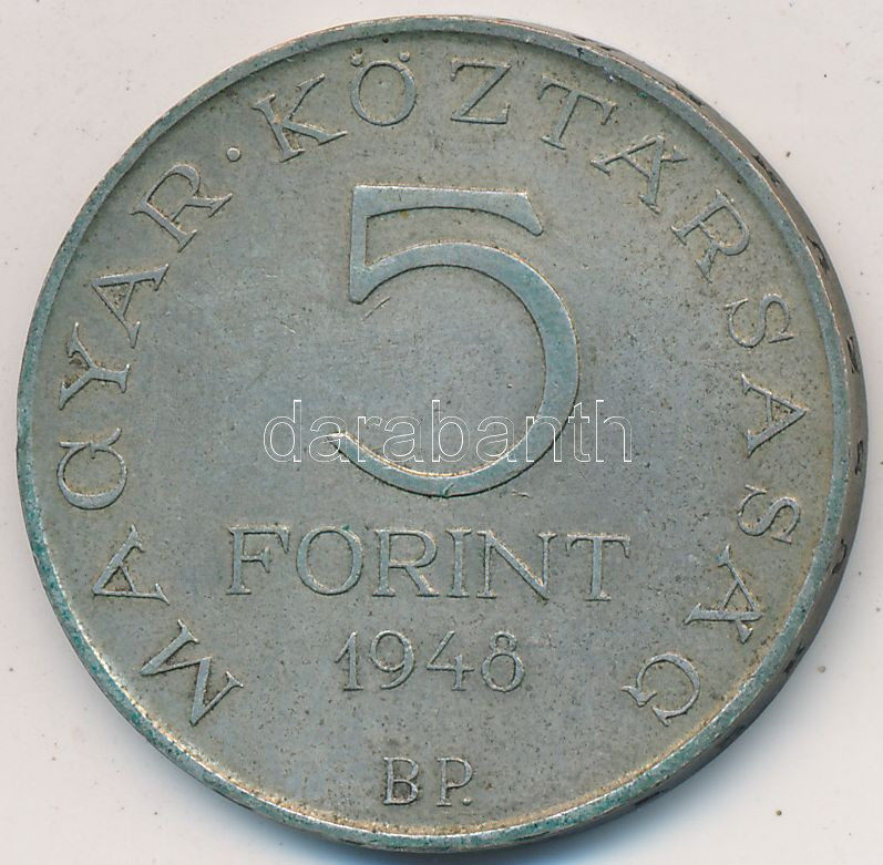 1948. 5Ft Ag "Petőfi" T:2,2- patina https://www.darabanth.com/hu/234-Gyorsarveres/234.0/Numizmatika/Magyar-fem-es-ezustpenzek~30008/1948-5Ft-Ag-Petofi-T2-2-patina~II1069885