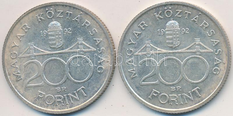Leírás: 1992. 200Ft Ag "MNB" (2x) T:2,2-