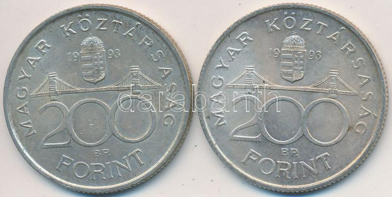 Leírás: 1993. 200Ft Ag "MNB" (2x) T:2,2-