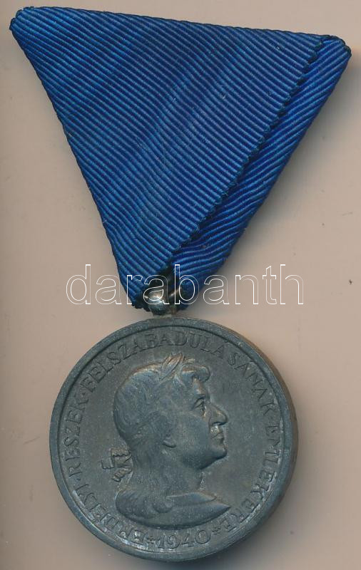 Leírás: 1940. "Erdélyi részek felszabadulásának emlékére" cink kitüntetés mellszalaggal. Szign.: BERÁN T:2,2-