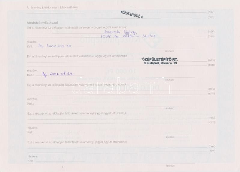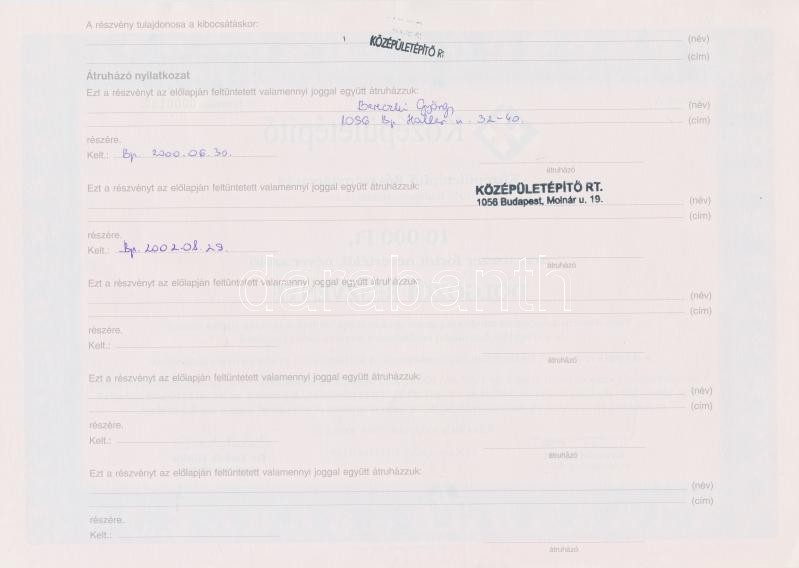 Budapest 1999. "Középületépítő Részvénytársaság" dolgozói részvénye 10... https://www.darabanth.com/hu/234-Gyorsarveres/234.0/Numizmatika/Reszvenyek-es-sorsjegyek~30005/Budapest-1999-Kozepuletepito-Reszvenytarsasag-dolgozoi-reszvenye-10000Ft-rol-2x-~II1065974