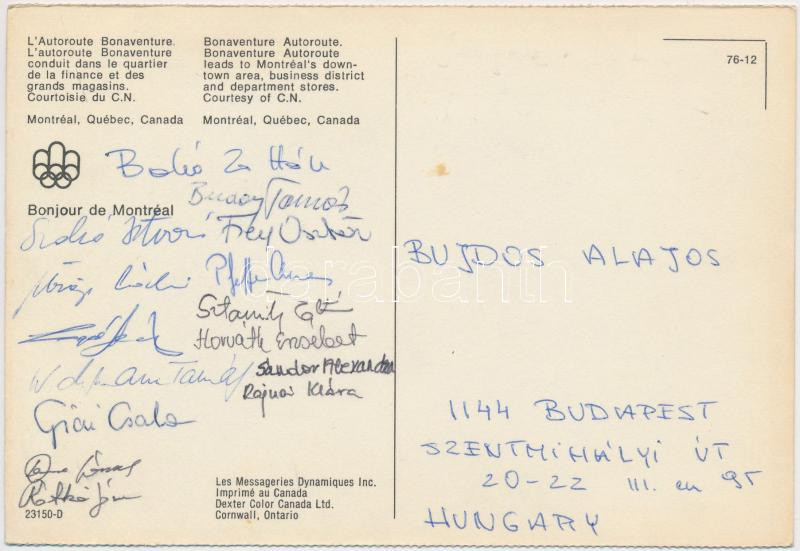 Leírás: 1976 Az olimpia kajak kenu csapat tagjainak aláírásai köztük Csapó Géza, Sztanity Zoltán, Pfeffer Anna, Rajnai Klára, Wichmann Tamás