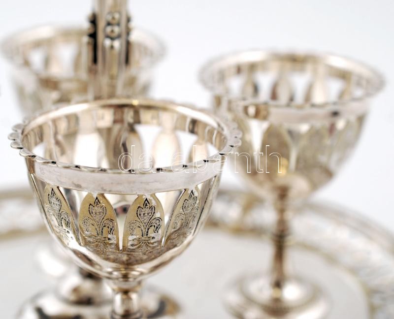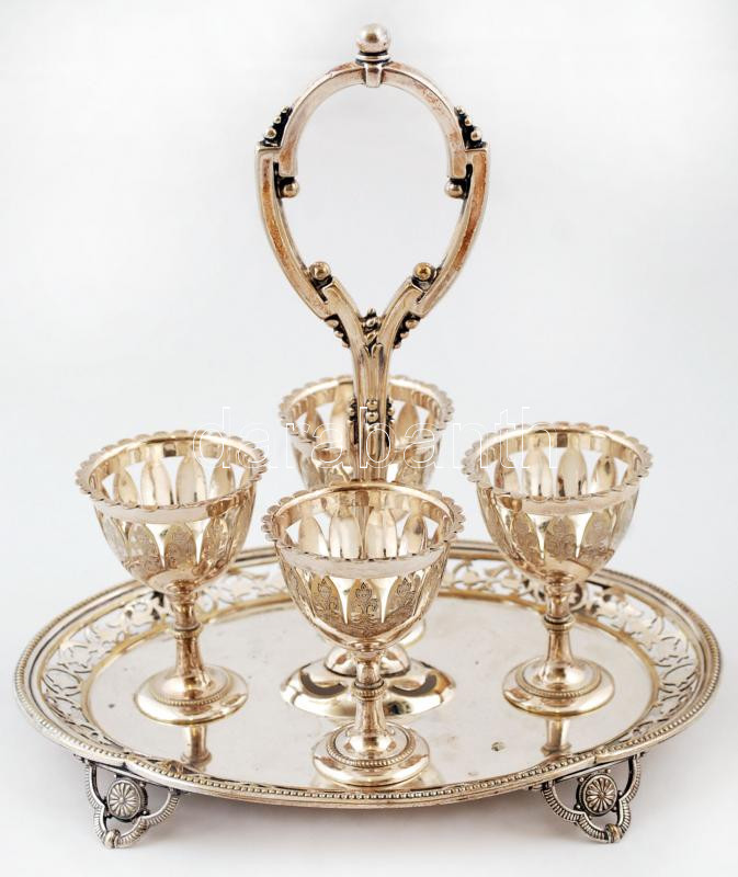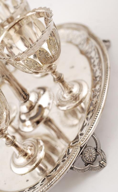 Leírás: Tojástartó készlet, fém, jelzett, m:22 cm, 14×19 cm