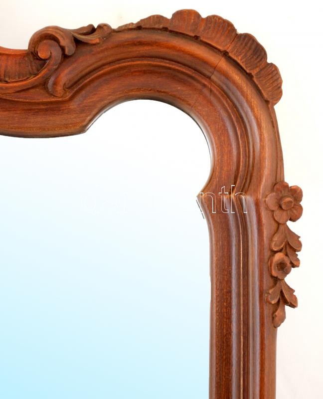 Leírás: cca 1920 Antik szecessziós fali tükör,fa, metszet üveggel, 103x60cm