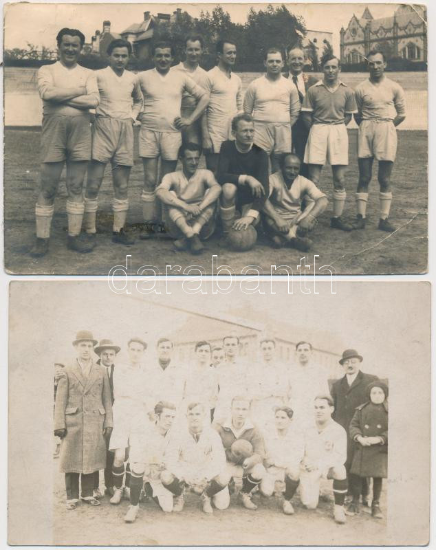 Leírás: 1926 Focicsapatok fotója,2db, az egyik feliratozva: "Postaanyagraktár futball csapata", névjegyzékkel, 9x14cm