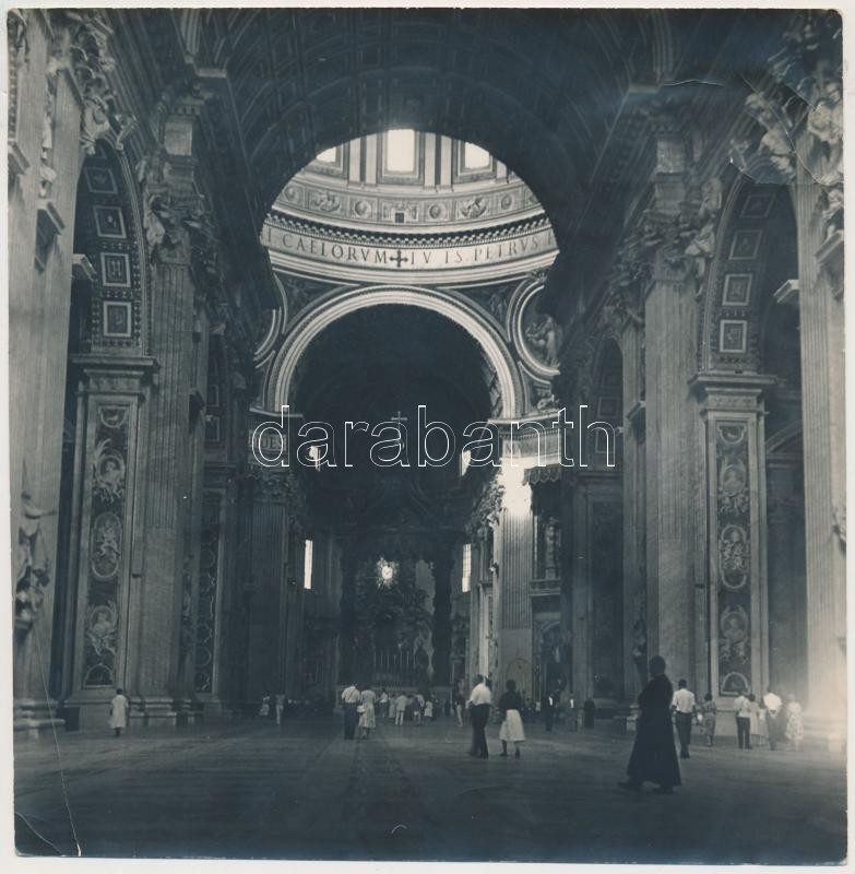 Leírás: 1960 Róma, Szent Péter bazilika, feliratozott fotó, sarkán törésvonal, 17x17 cm