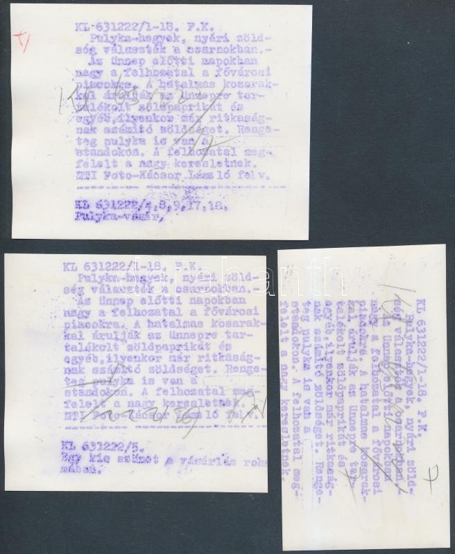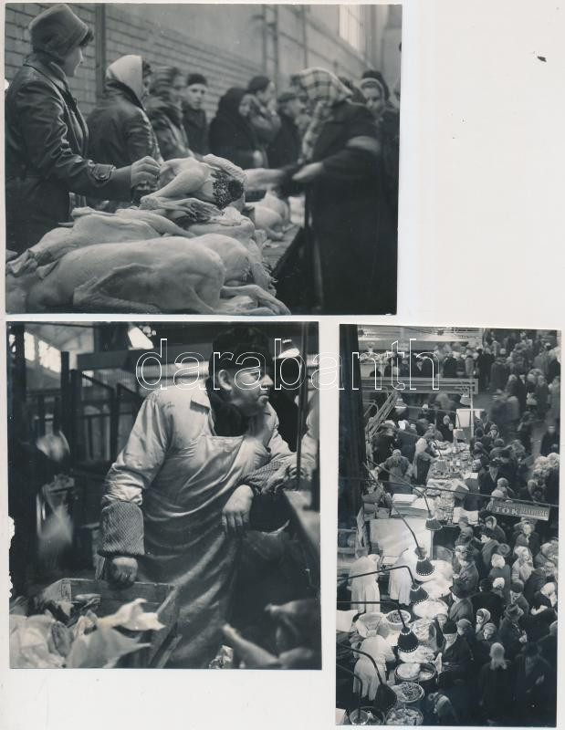 Leírás: 1963 Budapest, Vámház téri nagycsarnok, 3 db riportkép, feliratozva, 11x6 cm és 11x9 cm közötti méretek