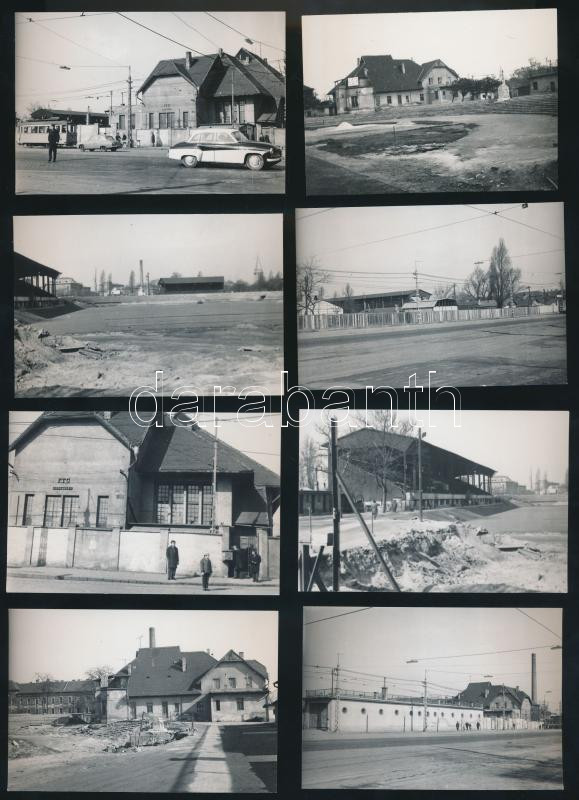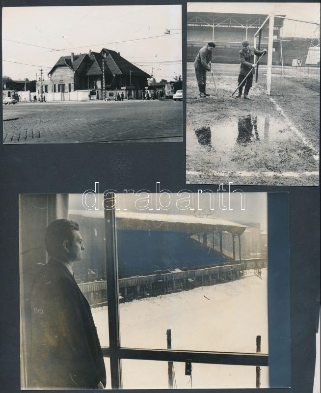 Leírás: 1967-1971 Budapest, a régi FTC focipálya, 11 db fotó, 6x9 cm és 13x18 cm közötti méretek