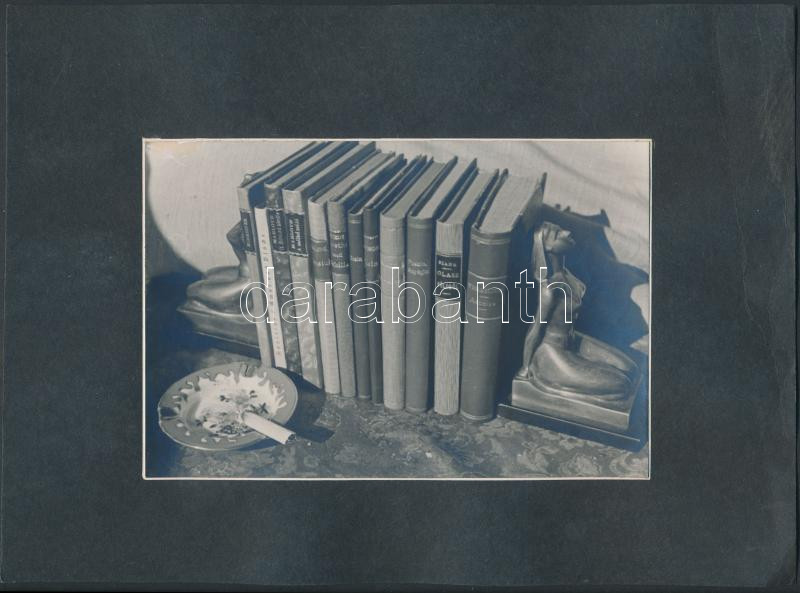 Leírás: Jelzés nélkül: Könyvcsendélet, kartonra kasírozott fotó, fotó: 18x12 cm, karton: 28x21 cm