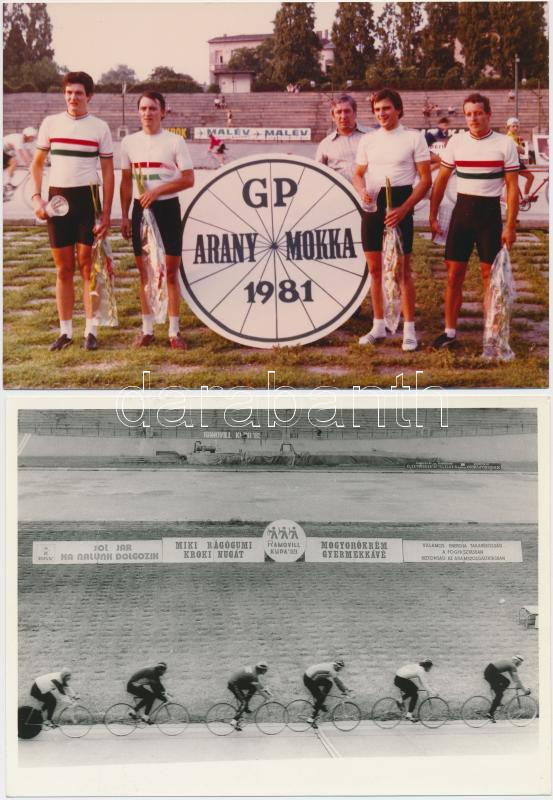 Leírás: Kerékpáros fotók 2db, az egyik verzón feliratozva, cca 12x18cm, +2db nyomtatvány, 10x15cm, 9x13cm