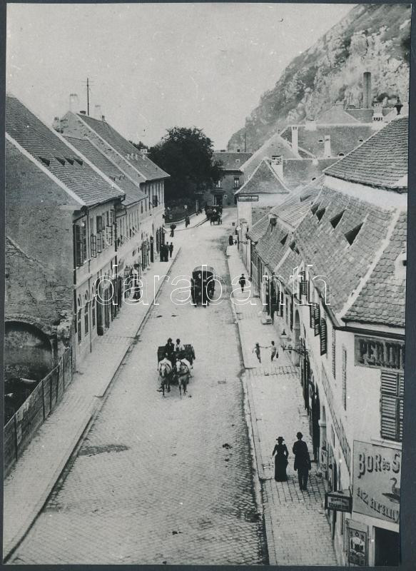 Leírás: cca 1880/1968 Budapest, a Gellért hegy alatti tabáni utca, későbbi előhívás, 17x12 cm