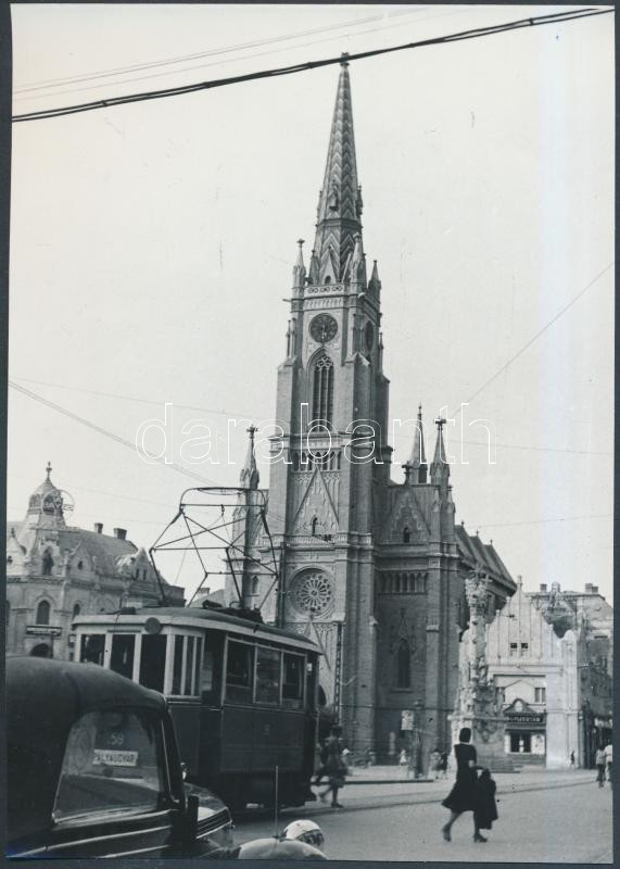 cca 1930 Budapesti villamosjárat a pályaudvarra, az autó szélvédőjén keresztül olvasható a tábla és talán a járat szám is, korabeli negatívról készült későbbi másolat, 17x12 cm
