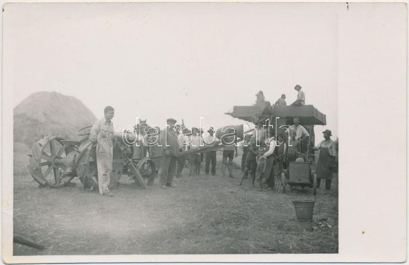 cca 1940 Aratás, cséplés fotólap, 14x9 cm https://www.darabanth.com/hu/235-Gyorsarveres/235.0/Festmeny-mutargy-papirregiseg-egyeb/Foto~400037/cca-1940-Aratas-cseples-fotolap-14x9-cm~II1075411