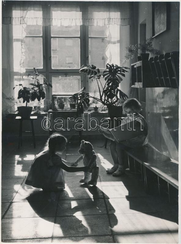 Leírás: cca 1960 Játék a mackóval, jelzetlen fotó, 17x23 cm