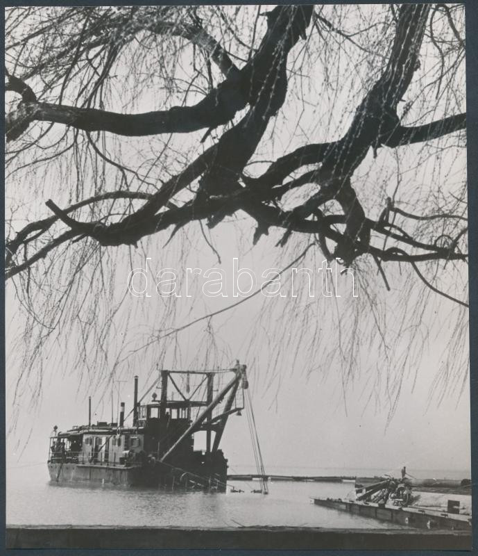 Leírás: cca 1970 Kotróhajó Badacsonylábdihegy strandján, 20x17 cm
