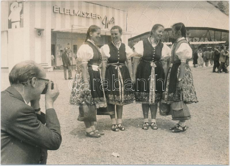 Leírás: cca 1970 Népviselet a BNV-én, korabeli fotó, jelzés nélkül, 13x18cm