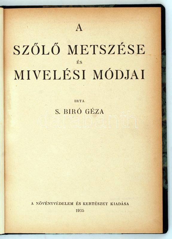 S. Bíró Géza: A szőlő metszése és mívelési módjai. Bp., 1935, A Növény... https://www.darabanth.com/hu/235-Gyorsarveres/235.0/Festmeny-mutargy-papirregiseg-egyeb/Konyvek-Konyha-es-kert~400016/S-Biro-Geza-A-szolo-metszese-es-mivelesi-modjai-Bp-1935-A-Novenyvedelem-es-KertC3~II1076139