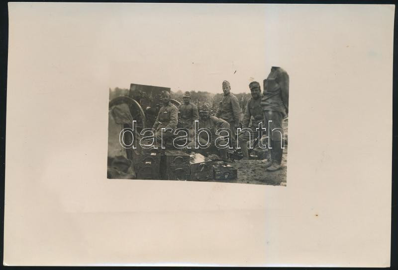 Leírás: cca 1914-1918 "Fényes László Szerbiában.", Ágyúk és muníciós ládák szerbiai állásainkban, hátoldalon feliratozva, 16x11 cm