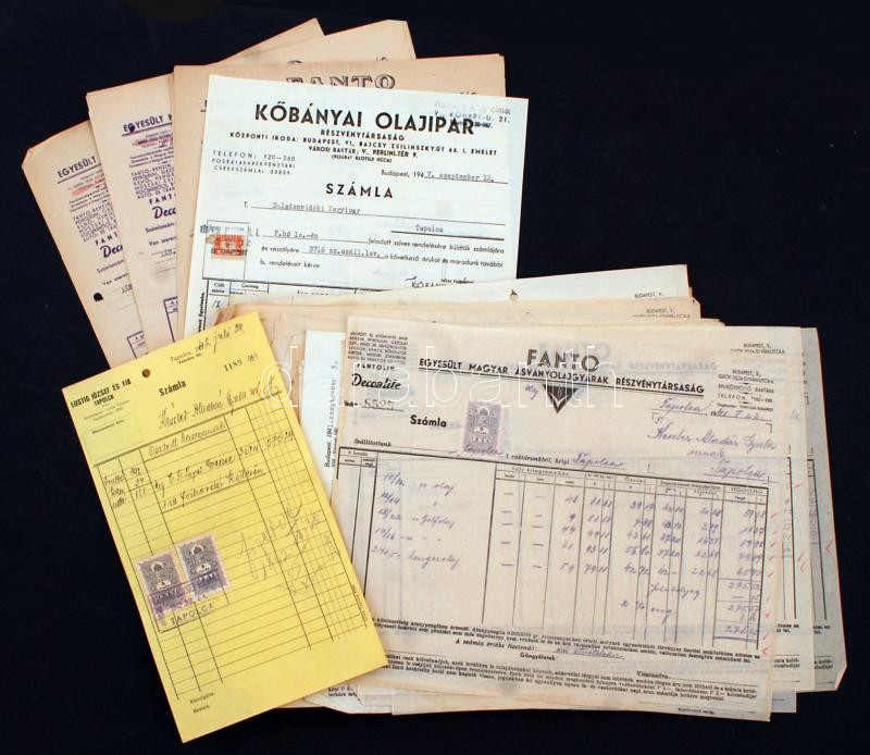 Leírás: 68 db illetékbélyeges számla az 1930-1940-es évekből