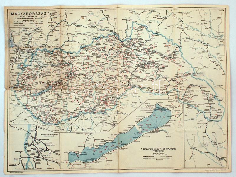 Leírás: cca 1940 Magyarország Vasúti térképe + A Balaton Vasúti és Hajózási térképe, 1:220.000, Magyar Földrajzi Intézet R.T. Budapest, 51x70cm