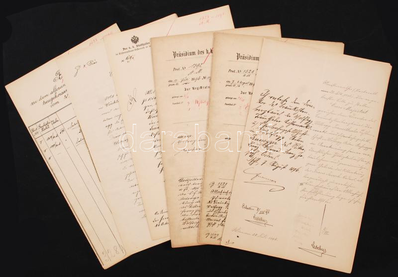 1896 Ferenc József-rend adományozásával kapcsolatos iratok, köztük a f... https://www.darabanth.com/hu/235-Gyorsarveres/235.0/Festmeny-mutargy-papirregiseg-egyeb/Tortenelmi-dokumentumok-keziratok-erdekessegek~400034/1896-Ferenc-Jozsef-rend-adomanyozasaval-kapcsolatos-iratok-koztuk-a-felterjesztes-Ferenc-Jo~II1075398