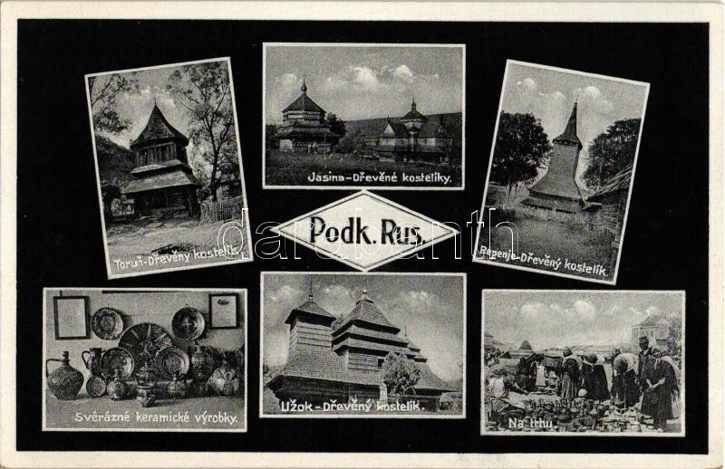 Leírás: Toronya, Uzsok, Kőrösmező és Repenye fatemplomai, kerámia piac / wooden churches, ceramic market