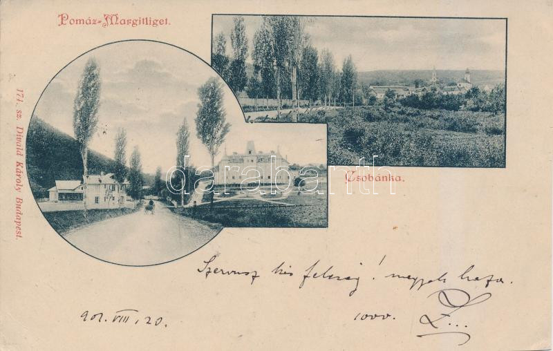 Leírás: Pomáz, Margitliget, Csobánka, Ottokár hadi árvaház, kiadja Divald Károly (fa)