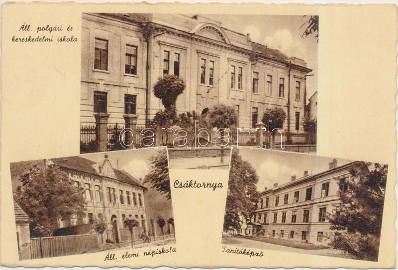 Leírás: Csáktornya, Állami polgári és kereskedelmi iskola, népiskola, tanítóképző, Balkányi Lajos kiadása / schools, teachers training institute