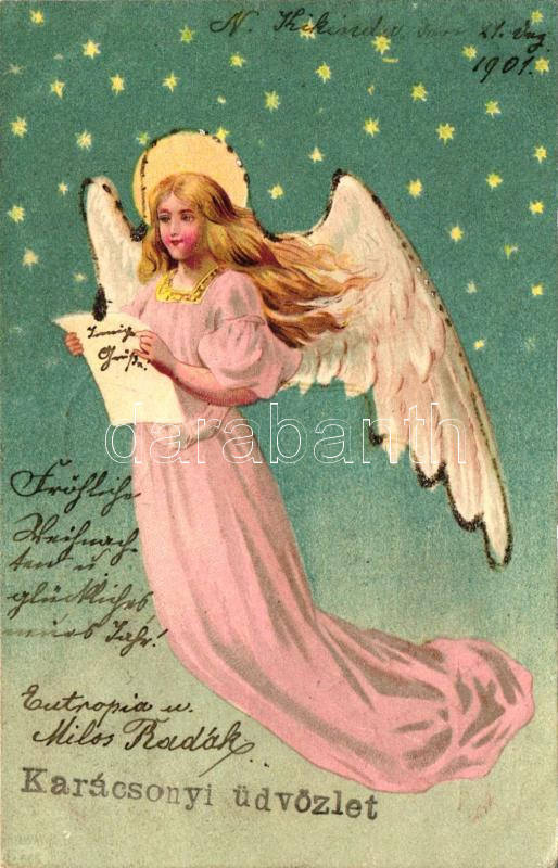 Christmas, angel, decorated litho https://www.darabanth.com/hu/235-Gyorsarveres/235.0/Kepeslapok/Udvozlolap~600056/Christmas-angel-decorated-litho~II1074887