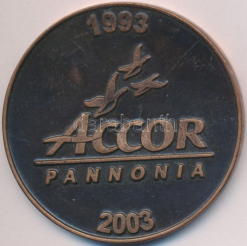 2003. "Budapest / Accor Pannonia 1993-2003" Br emlékérem (60mm) T:2 https://www.darabanth.com/hu/235-Gyorsarveres/235.0/Numizmatika/Magyar-emlekveretek~11/2003-Budapest-Accor-Pannonia-1993-2003-Br-emlekerem-60mm-T2~II1073075