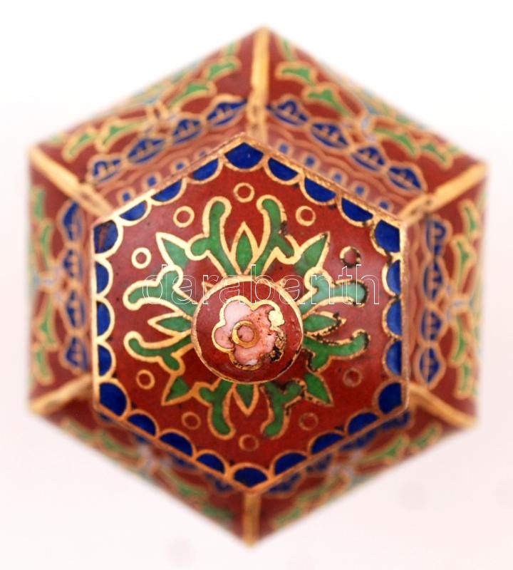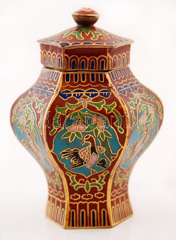 Leírás: Finom, igen aprólékos rekeszzománc fedeles kisváza, jelzés nélkül, 6,5cm